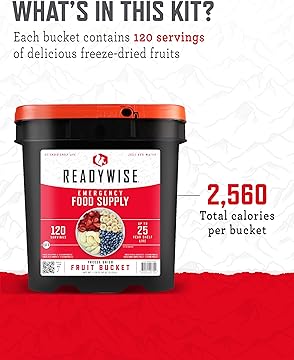 SURVIVAL ESSENTIAL: With 120 servings of meals, ReadyWise Fruit Bucket is the perfect starting point for anyone serious about preparing for the future. Stay ready for anything, from power outages to outdoor adventures!