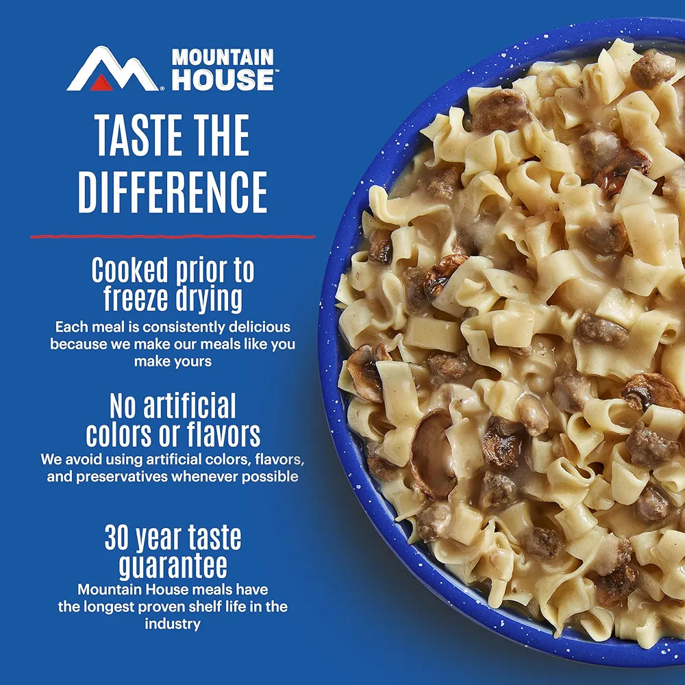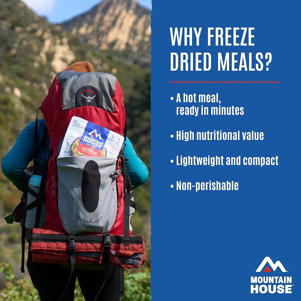 Since 1969, Mountain House has been the trusted leader in freeze-dried meals for camping, backpacking, hiking, and emergency food storage. Known as the original and best-tasting brand, Mountain House makes comfort food that feels like home—even when you’re miles away on the trail. Every pouch is lightweight, portable, and easy to prepare—just add water and enjoy a hearty, ready-to-eat meal in minutes. Perfect for outdoor enthusiasts, thru-hikers, campers, and families, our meals won’t weigh you down and make fueling your adventure simple and satisfying. Unlike other survival food and emergency rations, Mountain House focuses on taste first, delivering classic recipes and comfort food flavors that keep you energized and happy wherever you are. Backed by our Taste Guarantee and a shelf life of up to 30 years, Mountain House is also the go-to choice for preppers and long-term emergency food supply storage, giving you peace of mind that your pantry is always stocked for the unexpected. Whether you’re conquering a summit, planning a weekend camping trip, or building a reliable survival kit, Mountain House ensures you’re ready for every adventure—because with us, it’s always adventure made delicious.